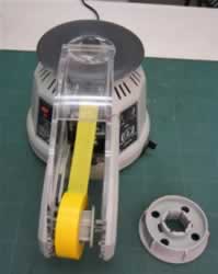 煩わしいテープカット作業を、 一度スイッチを押すだけでテープをターンテーブルの半周上にならべます。 テープ幅は、3mmから25mmまで使用可能です。 テープカットの寸法は、13mmから60mmまで自由に調整することができます一台で、たくさんの種類のテープをカットできます。 ストレート刃です。 |