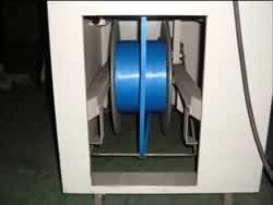 | ■特長 ●安全設計の対話形式・初めての人でもスグ使える バンドを品物に巻きつけて、ガイドに差し込むと“ピッ”という信号音で、引締め開始のタイミングを知らせます。 初めての人でも安心してご使用いただけます。 ●コンパクト設計のスリムなボディ ドアが一ヵ所もない安全で頑丈な一体構造キャビネット。スペース効率も向上しました。 ●ハンドリールはワンタッチのカセット式 バンド側板を取りつけてリールスタンドに乗せるだけで準備OK。 予備リールにあらかじめバンドを装着しておくこともできます。 また、商品識別、区別の為に数個の予備カセットリールを準備することにより数色のバンドの使い分けもできます。 ●扱いやすい回転式天板 天板は自動車のボンネットのように、持ち上げると開いた状態で確実にロックされ、保守点検などの作業に便利です。 ●テクノロジーが生かされた「省エネ」タイプ 梱包機の頭脳ともいえる制御装置は、IC回路を採用。また、作業時以外はモーターが作動しない省エネ設計。 ![]() ■外形寸法(単位o)