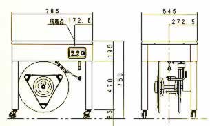 | ■外形図 引き締め方法選択機能(トルク締め、ストローク締め)を採用したことで全ての梱包物に最適な引締め力とスピードで対応します。 ![]() ■仕様