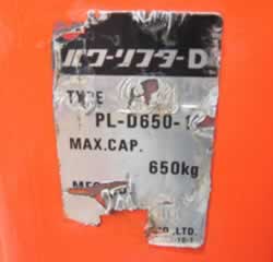| 中古バッテリー式パワーリフター/品番 PL-D650-15 問い合わせ番号 Z-0436-5 |