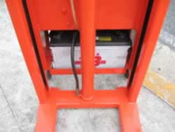 リフトの上昇スピードを自由にコントロールするソフトアップ機構付です。 昇降レバー操作で上下動はワンタッチです。 作業場所を選ばないバッテリー式です。 強力な足踏みブレーキ装置付です。 バッテリーメーターは3色に色分けした親切設計です。 充電器搭載でいつでも充電OKです。 |