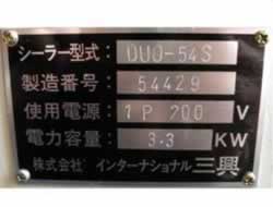 | 中古シュリンク包装機/品番 DUO-54S 問い合わせ番号 Z-0459-6 |