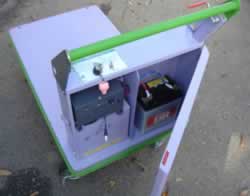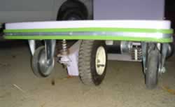 凹凸に強いスプリング設置式のドライブエアータイヤ。 強靭なパワー、200Wで登板。 マイコンとアクセルレバーでソフト前進、ソフト停止、坂道制御等、 簡単スムーズ運転。 チョッパー制御で省エネ設計。 充電時間 約 8〜9時間 使用時間 約 2時間(負荷状態)・約4時間(無負荷) ●バッテリー式 |