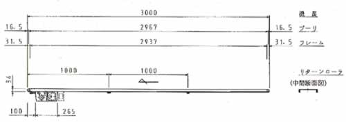 ベルト(W):195mm 機幅(W):735mm 機長(L):3000mm 機高(H):730mm |