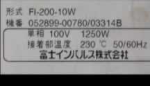 | 中古冨士インパルス/品番 FI-200-10W 問い合わせ番号 Z-0490-8 |