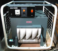 メッシュベルトのコンベア使用で小物のシュリンク包装に最適、温度とコンベア速度の調整も可能です。 中古ハッコーシュリンカー