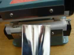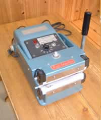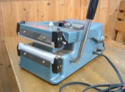 手軽なハンドル操作で約100kgの強力なシール圧力が発生し、上下加熱方式による高い温度のヒーター発熱で単体袋から厚手ガゼット袋、お茶袋、コーヒー豆袋、紙などのラミネート袋まで幅広く対応します。 | 中古富士インパルスシーラー茶袋用 品番 FI-130 問い合わせ番号 Z-0508-8 完売 |