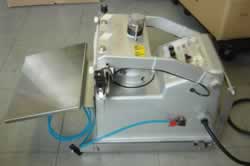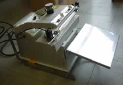 耐蝕性アルミ合金の本体にシリコンゴムパッキンなどで防滴加工を施してして水物の包装に対応します。 3段階に角度が変えられる(5度、30度、45度)傾斜台を標準装備し、袋に入った水分を漏らさずシールができます。 自動連続運転とエアペダルを踏む操作方法が選択できます。 別売りの特殊テーブルにより作業効率がUPします。 |