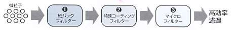 | ■特長 ブラシレスモーターの採用により、従来の小型バキュームクリーナーでは不可能であった連続運転が可能になりました。排気にカーボンの微粉塵を含むことはありません。クリーンベンチなどで連続的に作業をおこなうときの集塵に最適です。強力な吸引力と三重フィルターシステムによって0.3ミクロンのチリ、細菌を99.83%キャッチします。 ●紙パックフィルター 粒径の大きな粉塵はすべてこのフィルターに回収されます。脱着が簡単で回収物の取出しが手を汚さずにできます。 ●特殊コーティングフィルター 微粉塵が付着しにくいだけでなく、ミクロン単位の微粒子を濾過することができます。 ●マイクロフィルター 本機独自の設計による高性能フィルターです。0.3ミクロンまでのバクテリア、カビ胞子などさまざまな微粒子を99.83%以上回収します。 ●無段階風量調整機構 ダイヤル調整によって無段階の風量調節ができます。 ●モーター保護機構により焼損を防止 ![]() ■仕様