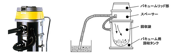 ■オプション ●袋内への回収用スペーサー(SAS-59・59S・60型用) 回収タンク内のビニール袋などに直接粉塵、固形物を回収することができます。 スペーサーを回収タンクとクリーナーモーター部の間にセットします。 ![]() ●トランスファーリッド(標準式) 回収物が大量の液体で中に固形物が含まれている場合はトランスファーリッド(標準式)の併用をお勧めします。 ![]() ![]() |