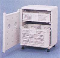 | ビン・カンの分別ができる高機能キャビネットです。下段の箱には中仕切りが付いているので、2種類の分別ができます。 |