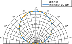 色彩照度計CL-200の斜入射光特性は右図青線のようになっています。