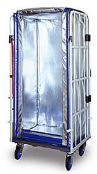 ●折りたたんで収納できるカゴ車タイプの保冷コンテナ |