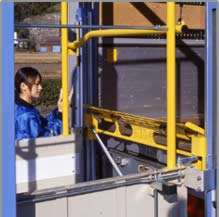 ●操作性に優れている作業効率もアップ! ●どなたでも簡単に操作 フォークリフトの免許は一切必要ありません。簡単なボタン操作で誰にでも使用できます。移動や収納も1人で簡単にできます。 数々の安全装置を備えており、人にやさしい設計になっています。 また、パレットや荷物の偏荷重による積み下ろしの場合の転送事故が防止できます。 ●環境にも荷物にも優しい 200V電源で、排気ガスなど有害物質の排出はありません。 荷物にかかる振動、衝撃も少なくロールボックス、台車にもやさしく運搬できます。 ●ランニングコストが割安 法定の自主検査が不要で、専任者も要りません。 ランニングコストはもちろん、メンテナンス費も削減されます。 ●省スペース フォークリフトの様に旋回するスペースが不要で、少ないスペースでも荷物の積み下ろしができます。 ●フォークリフト並の積載量 最大積載量は1,000kg。昇降速度は1秒間に150mmと(10tトラック荷台高さまで約10秒)作業効率もアップします。 ●高品質で安心 ISO 9001工場で設計・生産。メンテナンス体制も充実しており、全国ネットで対応可能です。 |