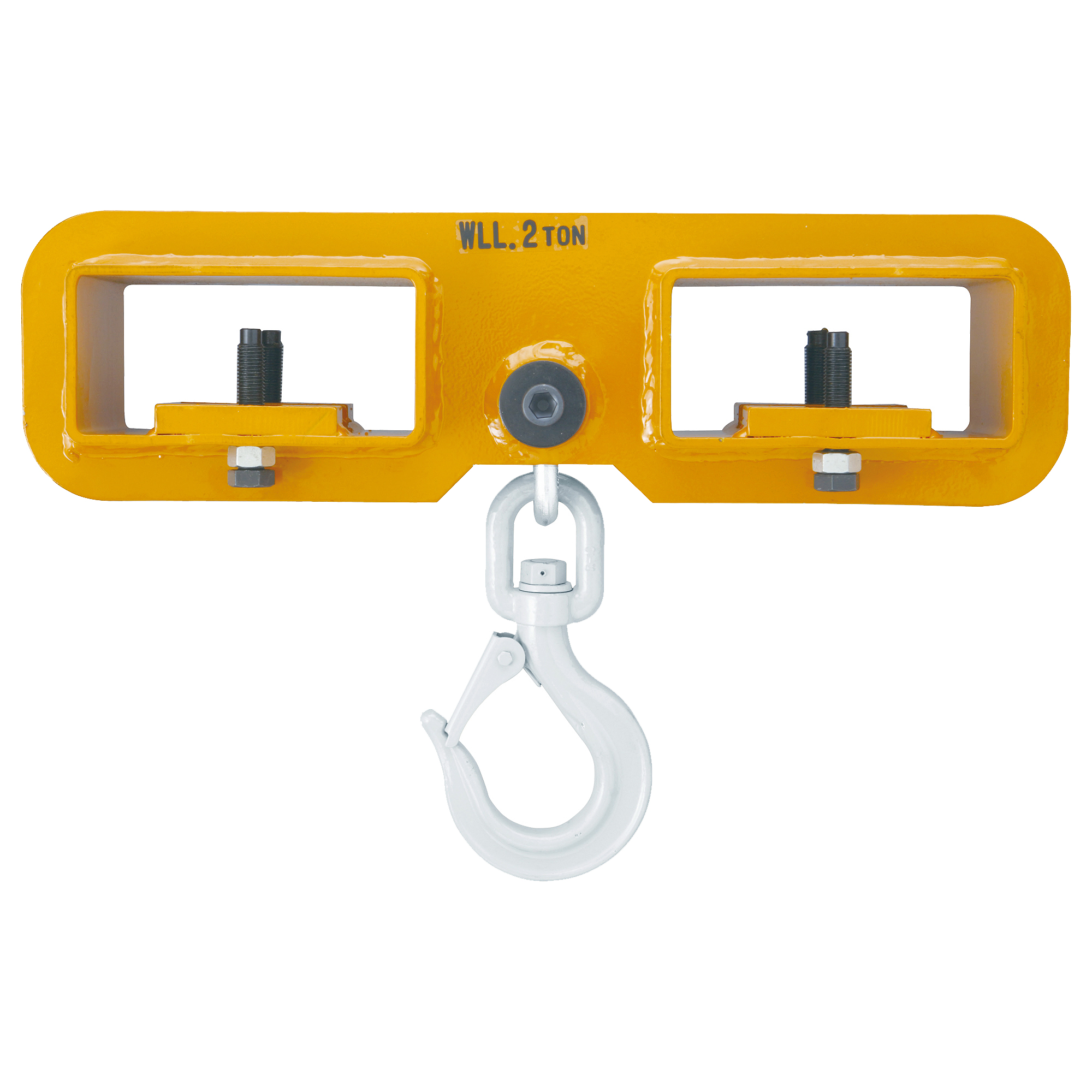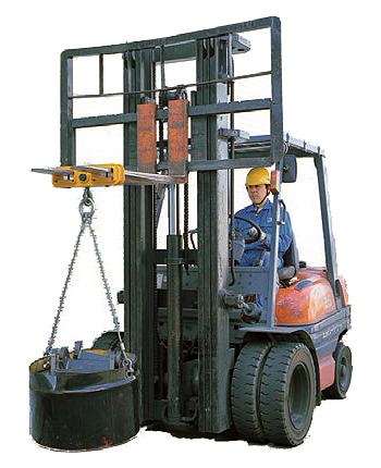 | ■特長 ●フォークリフト専用吊フック付天秤。 ●フォークリフトの爪にセットするだけで、すぐに使用可能。 ●取付けは固定用ボルトを締めるだけで簡単。 ●ラ ッチ付スイベルフック装着でフックの向きが自由。 ※荷を吊った状態(荷重をかけた状態)でフックを回転させないで下さい。 ■使用例 ![]() ■仕様