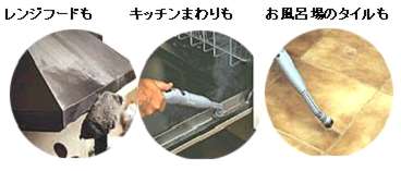 廃番です 用途 ●Q: スチームクリーナーってどんなもの? A:スチ-ムクリ-ナ-は、本体の中でお湯を沸かし、その発生した 高温スチ−ム(蒸気)を吹き付けて汚れを落とすクリ-ナ-です。高温のスチ-ムを吹き付けるため、油汚れに効果があり除菌効 果も同時に得られるという利点があります。ケルヒャ-のスチ-ムクリ-ナ-は、公的試験機関でテストされ食虫毒の四大菌(サルモレラ菌、黄色ブドウ球菌、O157、腸炎ビブリオ菌)に対して全て有効という結果が出ています。ケルヒャ-のスチ-ムクリ-ナ-は、空炊き防止センサ-や温度センサ-、圧力スイッチを装備した安全設計です。* 吸引機能はありません。 ●Q:どんなところに使えるの? A:スチームクリーナーの用途は、多様です。台所の流し回りのヌルヌルやガスレンジの回りの油汚れなどを洗剤 無しで落とすことができるので食べ物にも安心です。洗剤を使用しないので、嫌な臭いがしたり、手あれの心配もありません。また、お風呂場のタイルの目地、カビや洗面所周りの汚れを落としにも使えます。高温のスチ‐ム除菌で殺菌効果もあります。その他、エアコンやフィルターや車のシ-ト・天井についたタバコのヤニ、絨毯・カ-ペットのシミや汚れ落としなど工夫次第で幅広く使えます。 |