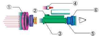 ■暗視スコープの仕組み 暗闇の中に存在する微量な光(光量子)が対物レンズによって集められ増倍管に取り込まれます。増倍管の内部で集められた光量子エネルギーに電気的な刺激を与え電子に変換します。変換された電子は増倍管内部の電界フィールド越しに加速されて、蛍光スクリーンに映し出され可視画像を作ります。 ●赤外線照射装置(イルミネーター) 暗視システムの画像の鮮明度は周辺光量によって左右されます。通常、暗視システムは光の少なからず有る状況下では非常に役立ちますが、言い換えれば増幅する光が無い完全な暗闇では有効な画像を提供できません。しかし当器には標準でイルミネーター(有効距離約90m)が内蔵されており、完全な暗所でも造影能力を有効的に高めることができます。