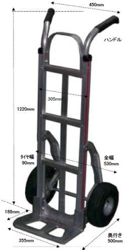●アメリカ製 ●積載荷重:225kg ●全高:1220㎜ ●重量:11.4kg ●荷台サイズ:188×355㎜ ●車輪径(エアー入):250㎜ ●ベアリング入 ●本体:アルミ製 ●お客様組立品 ![]() |
