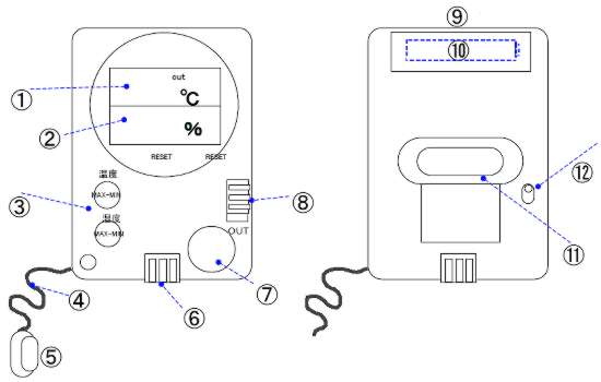 | 室内、室外最高最低温度(室内湿度)計/ 品番 M14A728AC-8 |