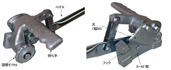 ●全長…610mm ●重量…4kg ●材質…本体:鉄鋳物 ハンドル:スチール ●切断能力…0.9〜1.5mm(スチール) |