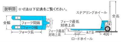 均等荷重1200kg <仕様> ●ステアリングホイールはゴム車輪、φ180×50mm、ロードホイールはナイロン車輪、φ80×70mm、シングル車輪を使用している。 ●ハンドルは人間工学式使用。 |