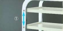 均等荷重150kg キャスター径φ60o 楕円パイプ一体曲げ加工 ●各パーツ(キャスターセット、棚板)を組み合わせることによって、完成させるワゴンです。 |