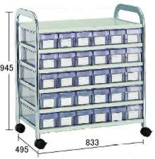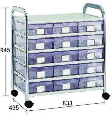 均等荷重150kg キャスター径φ60o ●基本形に引出しを入れることで、用途に応じた組合せが可能です。 ●棚板は、引出しが飛出さないよう、前後に段差があります。 ●双輪ナイロンキャスターφ60o 自在2個 自在ストッパー2個 |