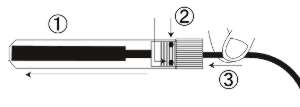 ●フォーカス調整 導光管を外し、先端のレンズ部を回して調整します。 ![]() ●カメラヘッドの調整 (1)導光管を取り外す。 (2)六角レンチ(M2)でイモネジを取り外す。 (3)CCDカメラのヘッドを、導光管の先端のわずか手前まで押し出す。