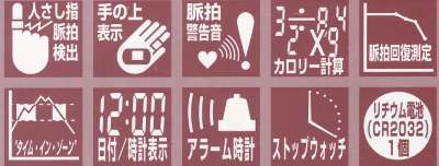 脈拍・時計・ストップウォッチ・3つのモニターが1つに。 ジョギング・エクササイズなど、トレーニング中に最適な測定機能 面倒な胸ベルトは不要! この商品は、医療器具では、ありません。 |