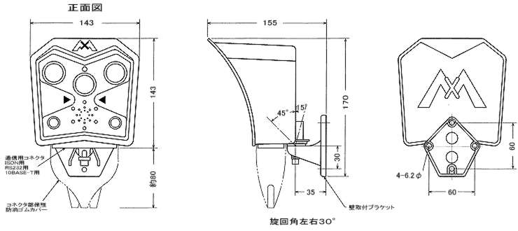 取付ブラケット(旋回:±30° 俯仰:+45°、-15°)