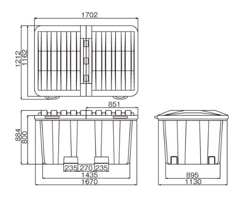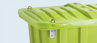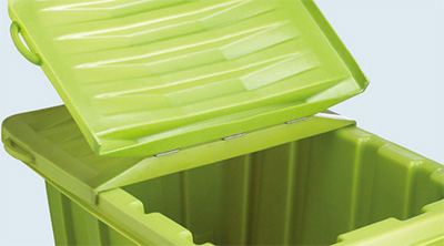 大きく使える、フタ付きコンテナ。産業廃棄物コンテナとしても使えます。![]() ■特長 ●柔軟なポリエチレン 衝撃強度が最大になるようにポリエチレンの厚さを10mmにしています。リサイクル可能な素材です。 ![]() ●開閉がラクな折れフタ仕様 フタは簡単に開閉できるよう左右を蝶番でつないでいます。 ![]() ●頑強な大型リブ構造 一般の大型産業廃棄物コンテナとして、またリサイクル用段ボール・石膏ボード・ベニヤ廃材等、リサイクル困難な廃材専用の産業廃棄物コンテナとしても使えます。また、大容量の廃材を一度に回収保管搬送まで行えるように大型リブ構造を採用し耐荷重設計となっています。 ■オプション ●吊金具セット ![]() 吊り上げて搬送できるよう、本体4カ所に環状専用金具を取り付けします。 ●反転式フォークリフト用 専用受け金具 ![]() 機動性に富む反転対応。 リフト・反転リフトで簡単に搬送できる専用の受け金具です。反転リフトでは180°回転に対応し廃材を一気に投棄できます。 ●文字入れシール ![]() 本体外面やフタの外面に文字シールの取り付けが可能です。 ●キャスター ![]() ちょっとした移動を可能にする径150mmのキャスターを取り付けることができます。(ストッパー付自在キャスター2ヶ 自在キャスター3ヶ) ■寸法図 ![]() ■製品概要