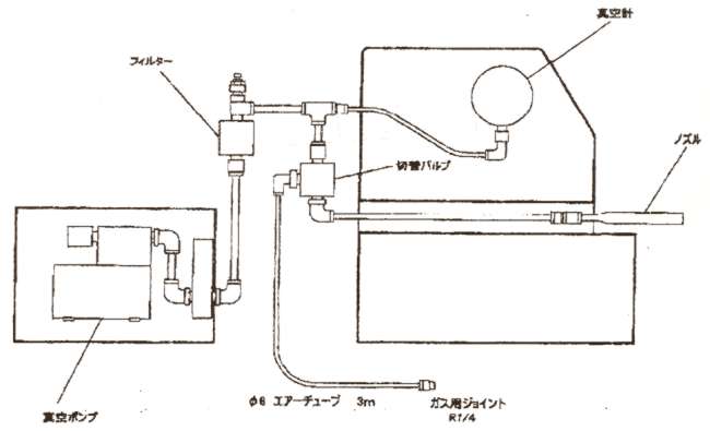 | ■特長 ●AC100V/1.5Kwと低電力です。 ●モーター駆動式なので、エア源にコンプレッサーなどの外部配管が不要で、電源があればどこでも使えます。さらに、騒音・振動が少なく、排気がないので、良好な作業環境を保てます。 ●ノズル式で脱気するので、脱気時間が短く、ワークの大きさ、形状の自由度が高くなります。 ●ポンプボックスが別置きなので振動がテーブルに伝わりません。 ●テーブルはピン引掛型で、品物に応じて高さと角度の調節ができます。 ●テーブルとポンプボックスが付きます ■各部名称 ![]() ■仕様