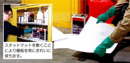 ■帯電防止処理加工されたスタットマットは、可燃性液体を安全に吸収します。![]()