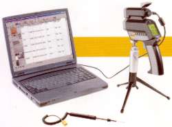 据付型としての利用 三脚に固定すれば、携帯型のフォトテンプを据付型として使用することもできます。また高温・低温アラームを設定することにより、温度が設定値を超えた場合にだけ測定個所の自動撮影が行えます。 |
