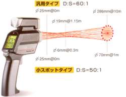 みたままがそのまま”測定エリア トゥルースポット円形レーザ採用 フォトテンプSMX6はトゥルースポット円形レーザを採用。レイテック独自の技術により、円形レーザの内側がそのまま測定エリアになるように設計されています。 *円形レーザは写真にも写り、異常個所のマーキングの役割を果たします |