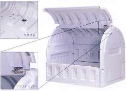 特徴 ■無駄を排除した設計、効率的な生産方式などにより、驚くべき低価格を実現しました。 ■外観デザインは凹凸の少ないシンプルな形状で、ゴミ・埃が残りにくく掃除も簡単で非常に衛生的です。 ■主要な部材は全てプラスチックでサビが出ず、いつまでも清潔です。 ■原料には耐候性、耐衝撃性、耐寒性に優れリサイクル可能な超高分子量ポリエチレンを使用しています。 ■内底面にφ40の水抜き孔+栓を設置。洗浄時の水抜きが容易です。 ■家庭用45リットルゴミ袋が18袋収納可能です。 ■フタを開けて安全に作業ができるようストッパーを設置しています。 ■回転扉と前面扉の2枚扉方式ですので広い間口が確保でき、ゴミの回収及び本体の清掃が楽に行えます。 |