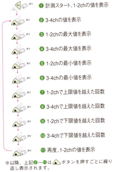 | ■ボタンの機能 ボタン1つで測定中のデータを見ることが出来ます。