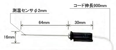 | ■特長 ●高確度で分解能も0.1℃と上位機種並に優れています。 ●測定に便利なデータホールド、MAX/MINホールド機能、相対値機能付。 ●本体と分離した測温センサ部使用により、測温部から離れての測定が可能です。 ●測温センサホルダにスベリ止めを付けていますので、安心して測定できます。 ●ポケットサイズながらワイドな測定範囲(-50.0℃~200.0℃)です。 ●無駄な電池消耗を防ぐオートパワーセーブ機能付。((操作終了30分後) ■センサー寸法 ![]() ■仕様