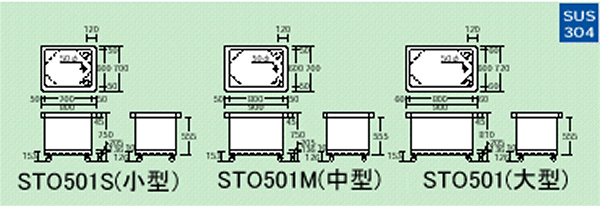 | 18-8ステンレスタンク(ダストカート)/品番 STO501シリーズ | 【詳細表示】 | |||||||||||||||||||||||||||||