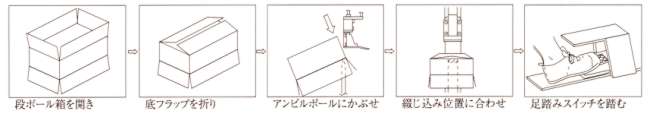 | ■クリンチの調整 ご使用になるダンボールの厚さと紙質に合わせ、調節ネジ(ハンド式)又はエキセンピン(エアー式)でクリンチ状態の調整が出来ます。 ![]() ■綴じ込み深さの調整 調節用ハンドルの位置により綴じ込みの深さは5段階に調整できます。 ![]() ■特長 ●手持ち式の封函機です。 ●ハンド式のため電源や圧縮空気源は不要。 ●場所を選ばずいつでもどこでも手軽に封函作業ができます。 ●厚手(ダブル)ダンボールなどにおすすめです。 ●STSLシリーズはSTSHシリーズの姉妹機種Lサイズのステーブルを使用します。性能・仕様はSTSH型と同様です。