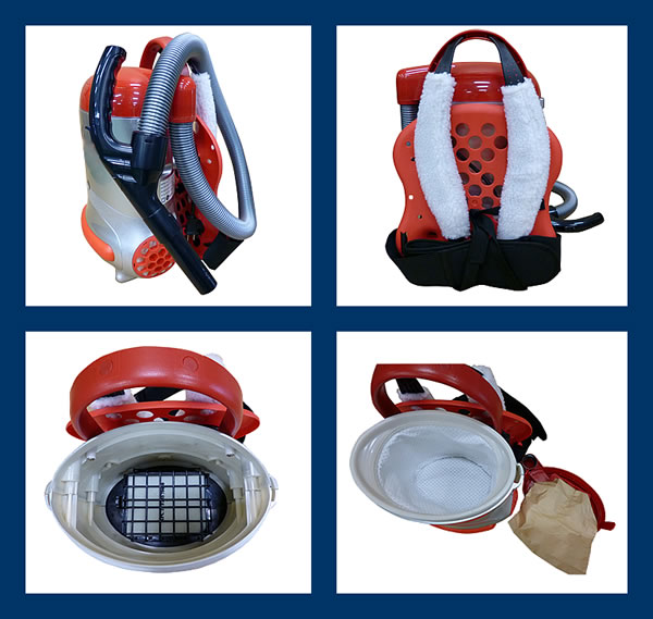 ●小型・軽量で人間工学に基づいて設計されたバックサポートは背中にフィットして背負い心地のよいクリーナーです。 ●強力なバキュームモーターによって吸引力も抜群でその上運転音も静かです。 ●吸引された微粉塵などを捕集できる4段階フィルターシステムによって排気はクリーンで室内を汚染することはありません。 ●充電式と比べバッテリーがない分軽量です。 |