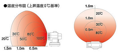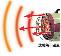 | ■快適作業環境を実現。さまざまな場所と場面で快適暖房・乾燥に大活躍。 ●赤外線放射で屋外でも威力を発揮します。 ●熱出力12KWのハイパワー暖房です。 ●燃焼持続8時間のゆったり暖房です。 ●静音運転で回りに迷惑をかけません。 ■特長 ●赤外線熱放射で軽量でも効率のいいスポット暖房を実現。 ![]() ●軽量コンパクトだから使い勝手自由自在。片手でどこへでも気軽に持ち運べます。 ![]() ■放射エネルギー線図(上昇温度0℃基準) ![]() ■仕様