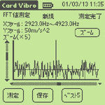Hzと、まさに十二分の能力を発揮します。また、周波数とレベルを高い順に「ベスト5」まで表示することもできます。さらに、電圧値ではなく直接振動レベル単位で読めるのも、大きな特長の一つです。 |