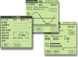 「電子手帳」とも呼ばれるPDAを使った振動計なので、データを記録・保存するのはお手のものです。振動測定を行った現場で簡単に結果を記録できるので、入力ミスや転記ミスがなくなると同時に、作業性も向上します。
