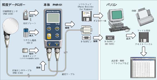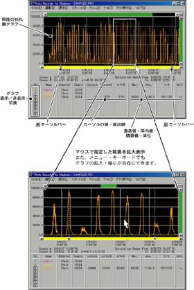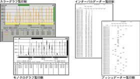 付属のソフトウェアにより、本体の記録設定や、記録されたデータのグラフ化・表作成・ファイル化・印刷等の処理を簡単に行うことができます。
