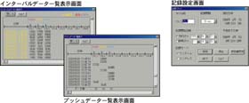 | テキストファイル作成機能 記録データは、任意の範囲(期間)を一般的なテキスト形式(CSV形式等)でファイル化できますので、お手持ちのExcelやLotus等の表計算ソフトや解析ソフトでデータを使用することができます。 |