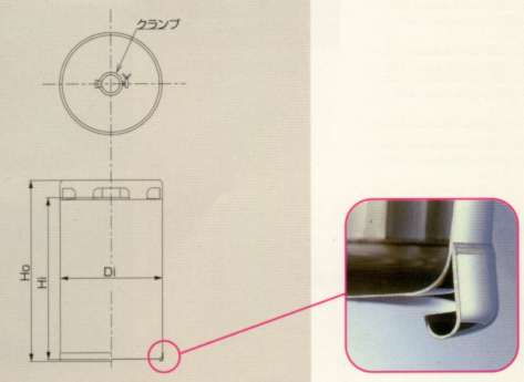 ステンレスSUS304製の汎用容器です。 その他、SUS316、SUS316Lもご用意できます。 開口部は機密性の高いクランプ締め。