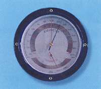■概要 本器はベローズ(空ごう=弾力性のある波形の金属板を密封し、内部を真空にしたもの)が大気圧の変化によって伸縮するのをテコの原理で拡大して、その時の気圧をhPaやmmHgで指示するものです。 |