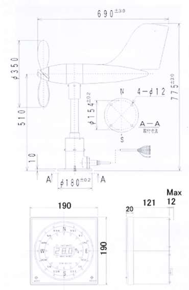 | デジタル指示風向風速計/品番 WP111-DG-551B |