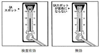 | ■キットの調整と保存 試薬は全て調整済ですので、特別な試薬は必要ありません。未開封状態であれば、キットに印刷された期間まで室温(15~30℃)で保存可能です。開封後はお早めにご使用下さい。 ![]() ■注意 ●開封後はすぐにご利用ください。 ●液体試料に用いる場合は測定時間が変わることがあります。 ●高温状態による保存は測定に影響を及ぼす場合がございます。 ■使用方法 ① 包装を開け、内容物を確認してください。乾燥剤がピンク色に変色していたり、スポットや細管が紫色に変色しているものは使用することができません。 ② 検出用綿棒を口内に30~60 秒間入れて綿棒を十分に湿らせます。 ![]() ③ WPAA-150を水平な場所に置きます。綿棒を垂直に立てて導入口にいれます。検査器の先端にあるQA スポットにピンク色の液が達するまで綿棒を穏やかに押し続けます。 ![]() ④ 約2分間で反応が完了し、QA ポットが紫色になります。この時、アルコール濃度に応じて細管が紫色に変化します。この値から濃度を測定します。QA スポットが紫色にならない場合は検査ができておりませんので、再度行ってください。 ![]() ■測定結果 ① 反応終了後に目盛りを読み取ります。 左側がmg/dL、右側が%で濃度表示されています。右の例の場合、100mg/dL あるいは0.10%になります。1 dL は100 mL です。 ![]() ② 測定値が0.01%もしくは10mg/dL以下のときは、アルコールは検出されません。 ③ 本キットの測定範囲は10~145mg/dL = 0.01~0.145%です。 ■性能評価 アルコール濃度簡易検査キット「WPAA-150」の性能評価の結果を以下に示します。 ●同時再現性